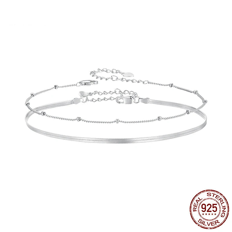 Serpina Anklet – 925 Sterling Silver Snake Chain Anklet with Heart Charm